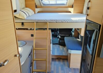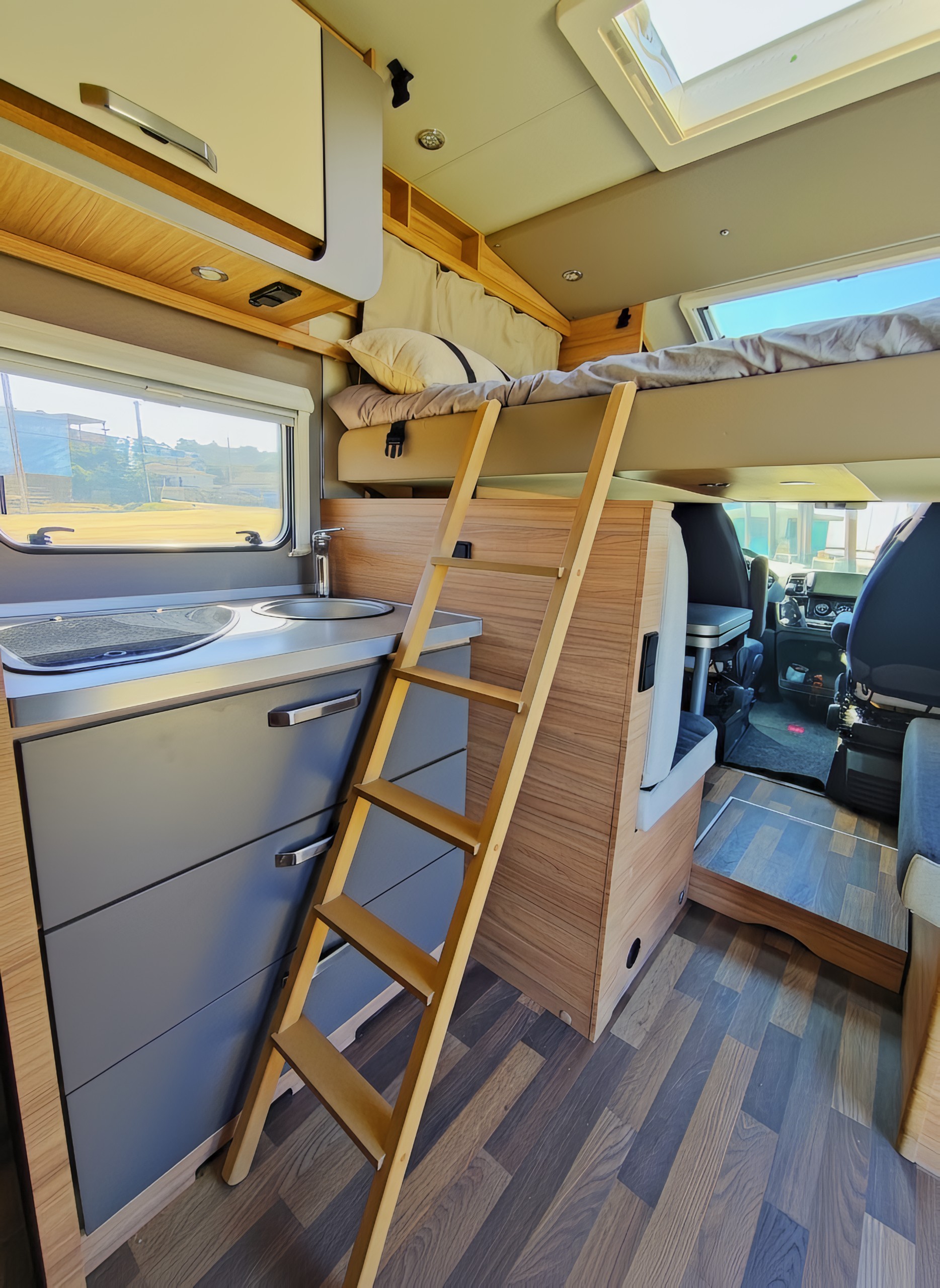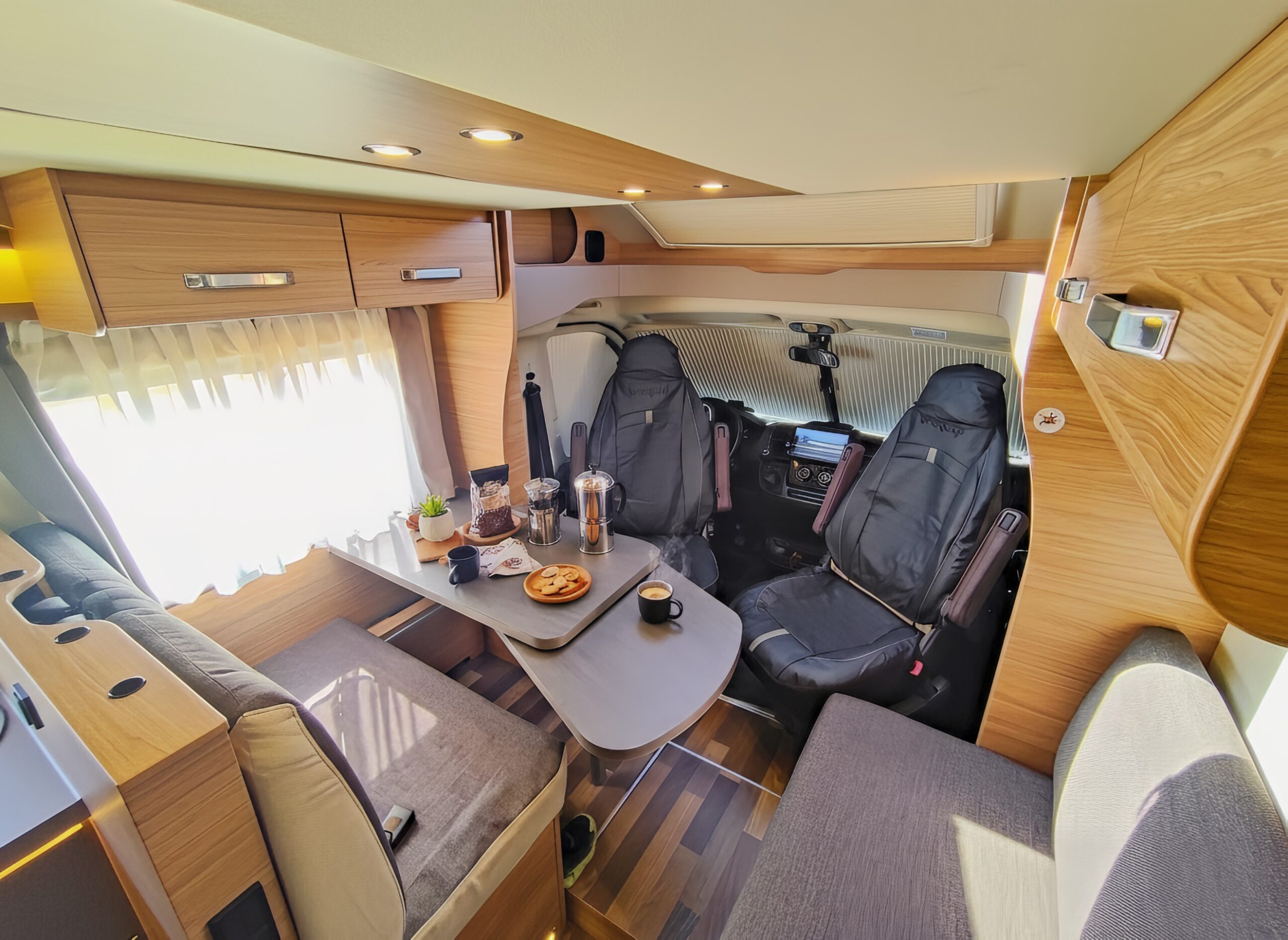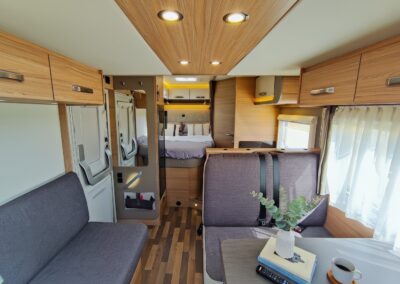 El modelo Lafken es una Motorhome perfilada con capacidad para 5 personas distribuidas en 2 camas de 2 plazas y el comedor que se transforma en una cama de 1 plaza.