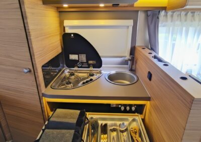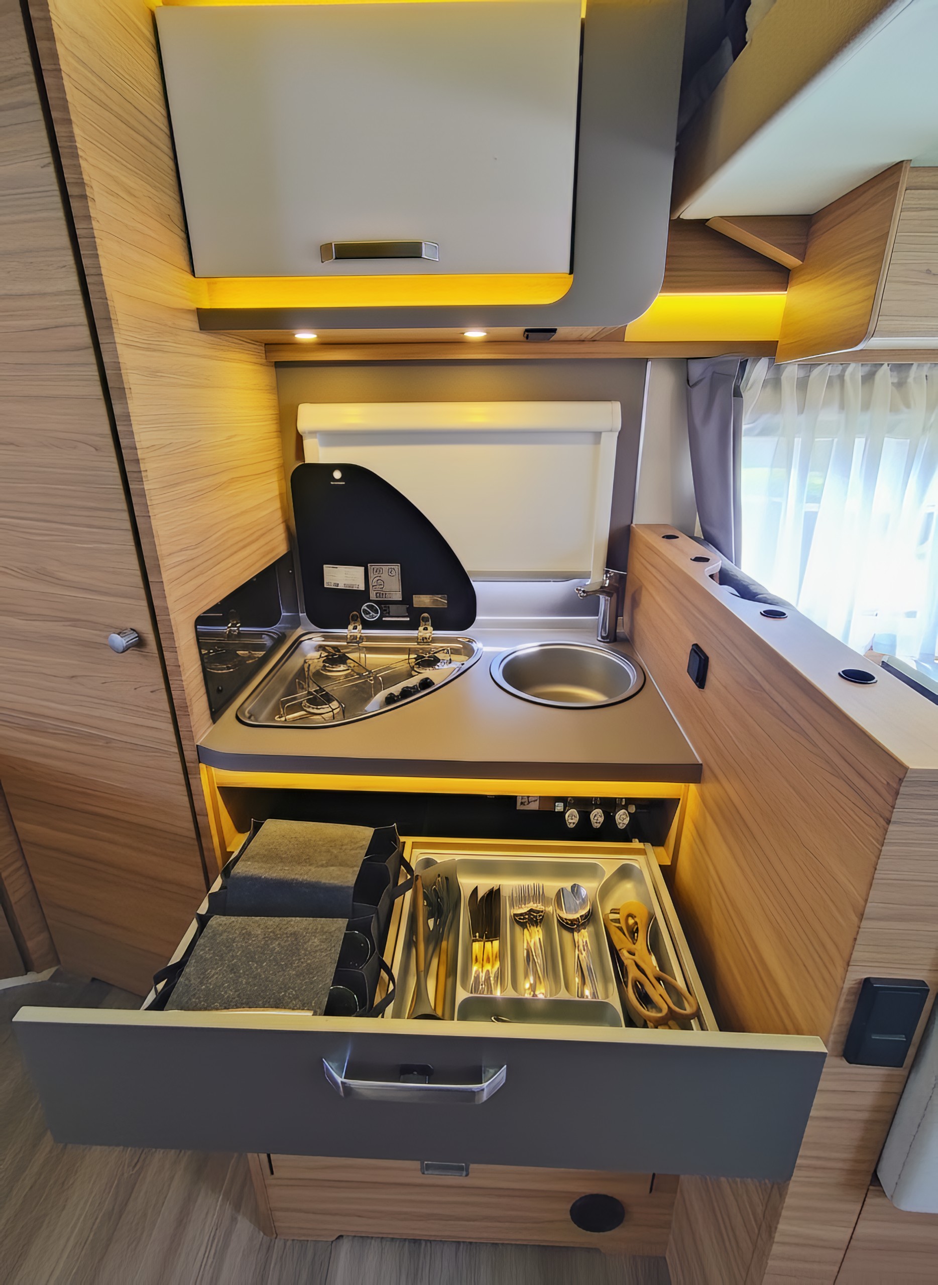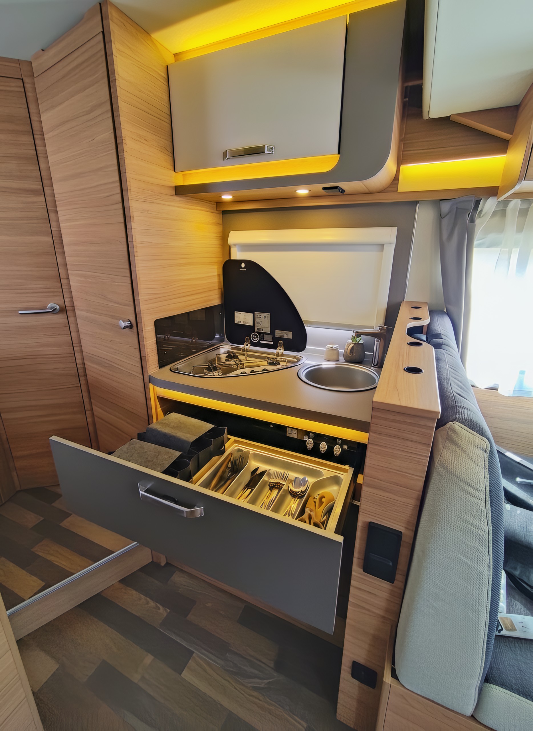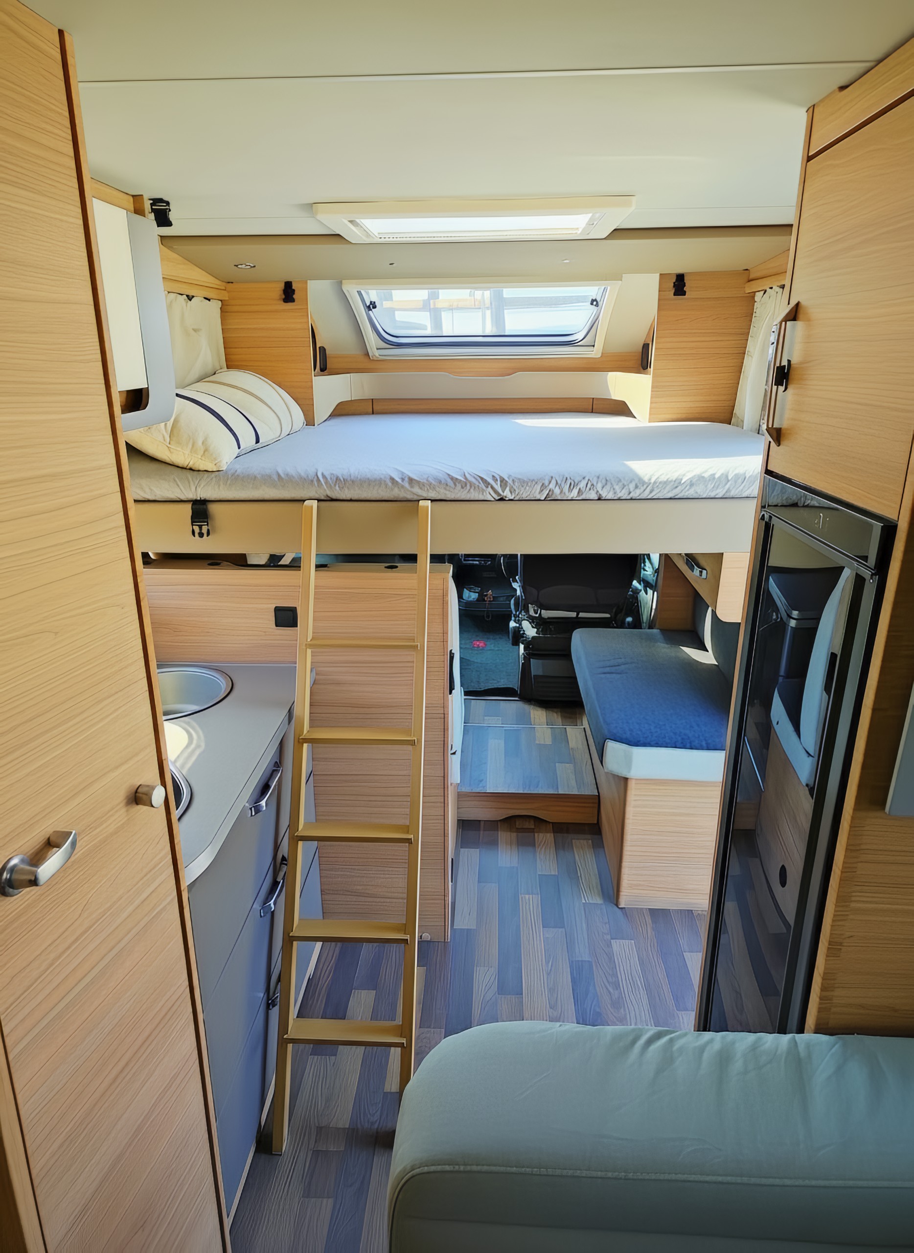 El modelo Lafken es una Motorhome perfilada con capacidad para 5 personas distribuidas en 2 camas de 2 plazas y el comedor que se transforma en una cama de 1 plaza.