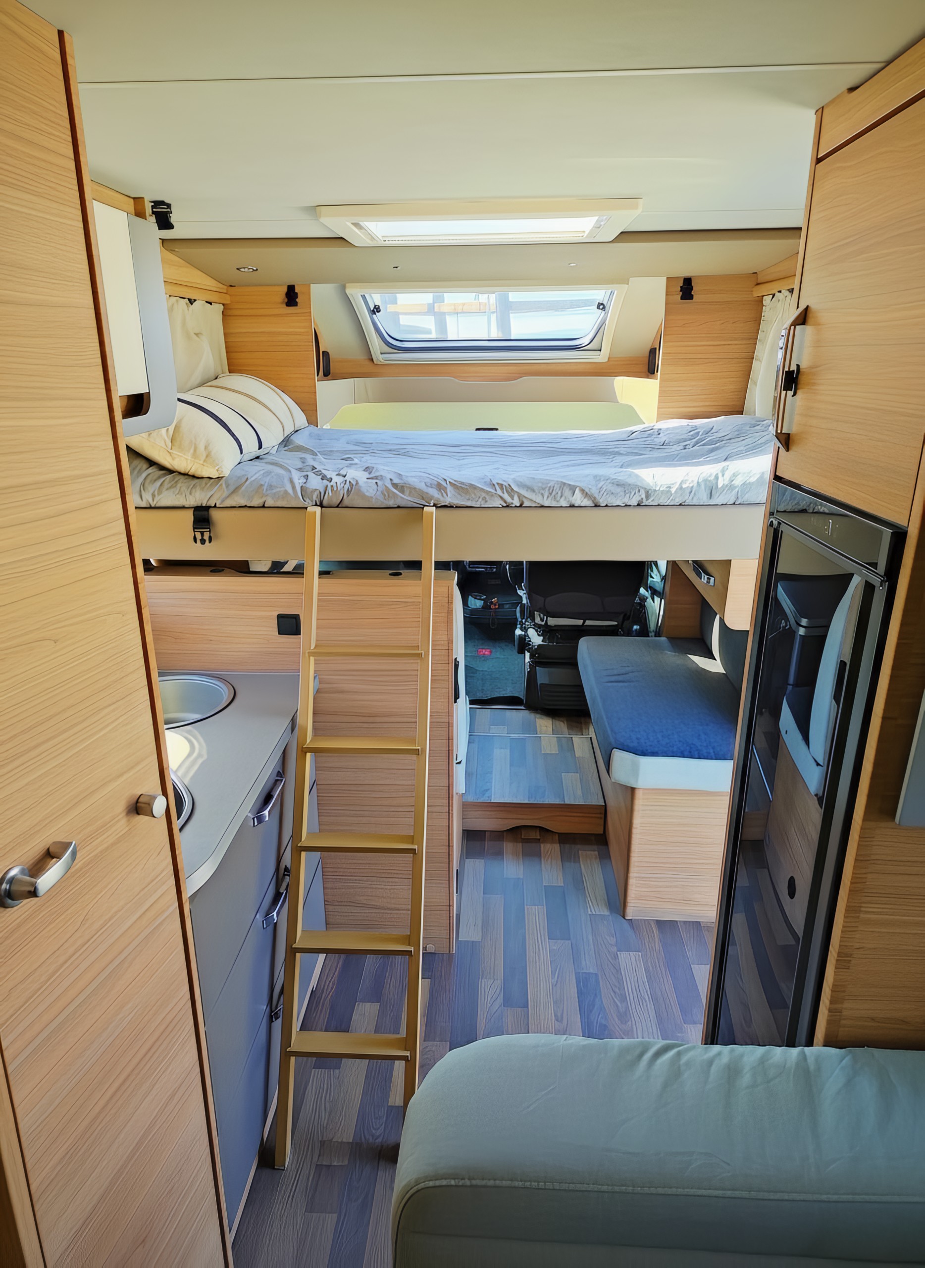El modelo Lafken es una Motorhome perfilada con capacidad para 5 personas distribuidas en 2 camas de 2 plazas y el comedor que se transforma en una cama de 1 plaza.